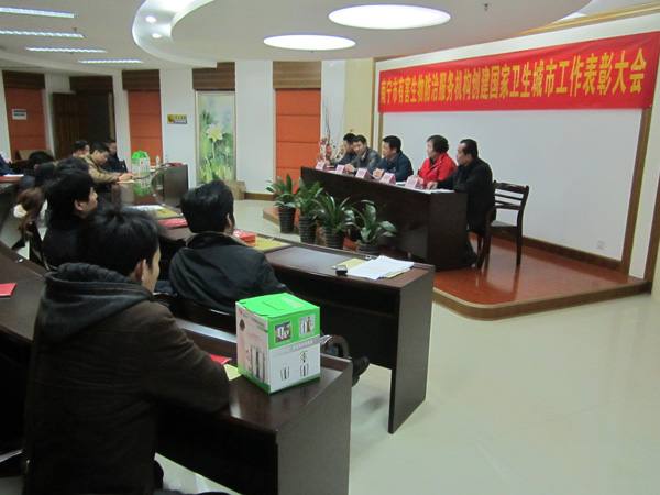 2012年3月8日,由南寧市愛衛(wèi)辦組織在市衛(wèi)生局隆重舉行了“南寧市有害生物防治服務(wù)機構(gòu)創(chuàng)建國家衛(wèi)生城市工作表彰大會”,南寧市康凈衛(wèi)生消毒殺蟲有限責任公司在首府南寧市創(chuàng)建國家衛(wèi)生城市工作中,成績突出,被評為先進單位以及本公司馮東等6名員工被評為先進個人,圖為李作慶副主任主持會議及頒發(fā)證書現(xiàn)場。
